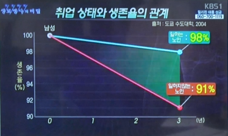 일을 하는 노인은 무려 98%의 생존율을 보인다고 합니다.